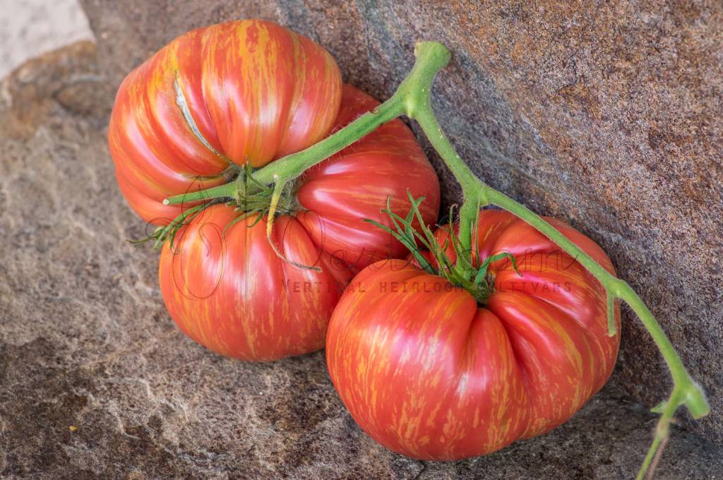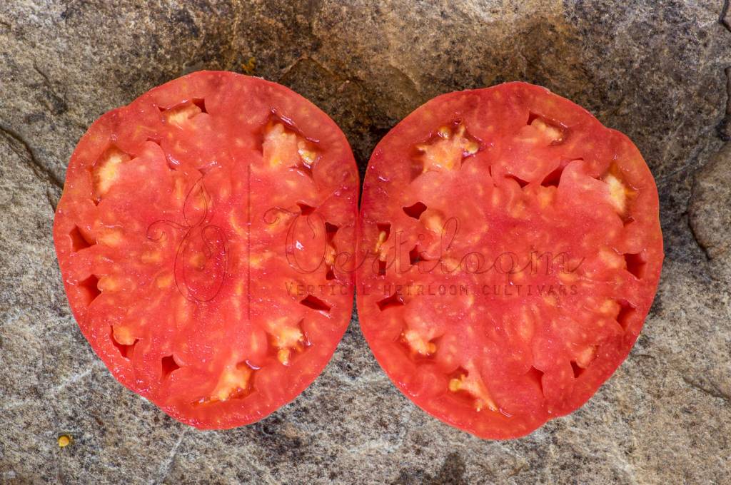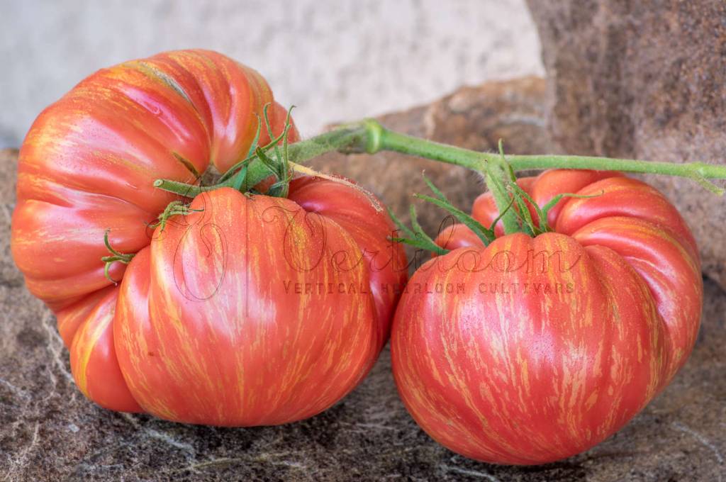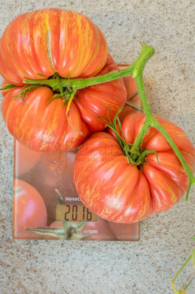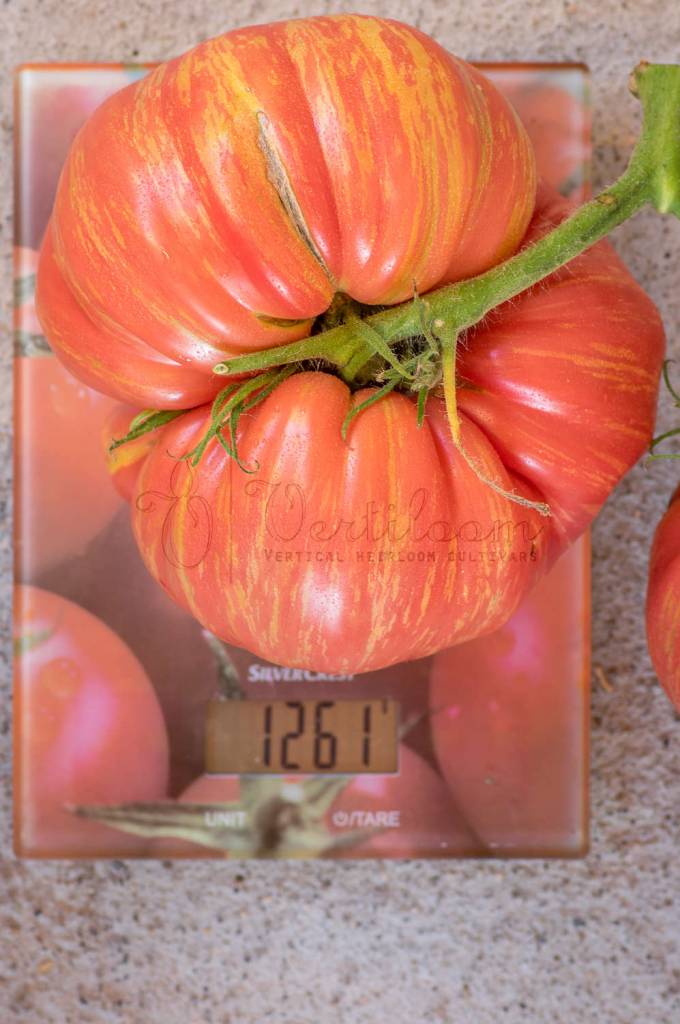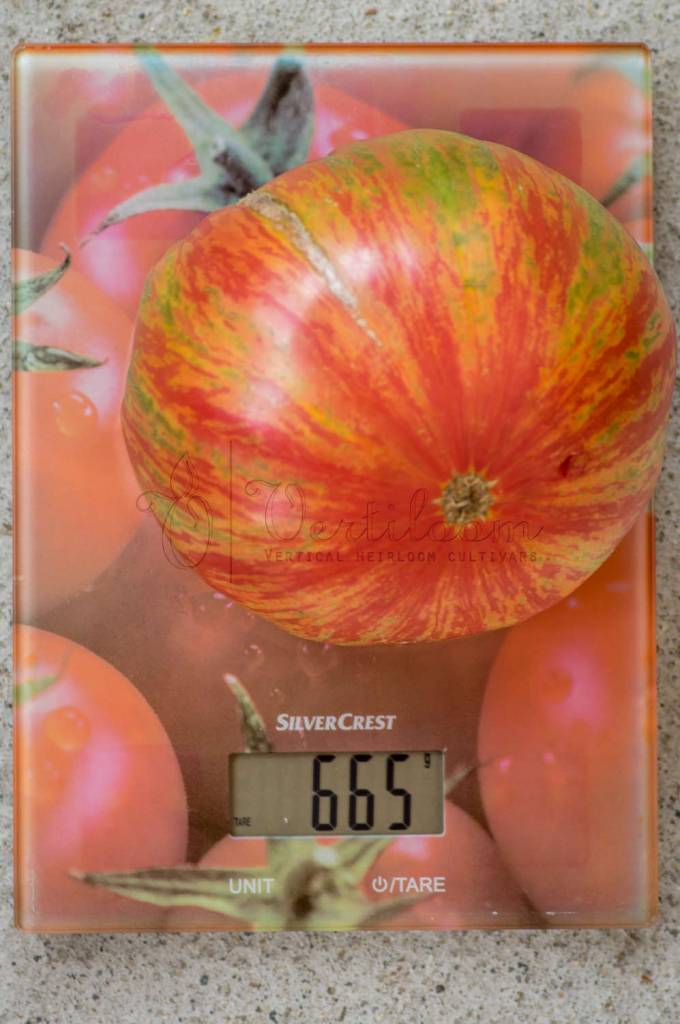 Big fruits from 250 to 500 grams, beefsteak type, flattened on the poles and regular ribs in the upper part. Shoulders rounded or bent in case of large calibers.