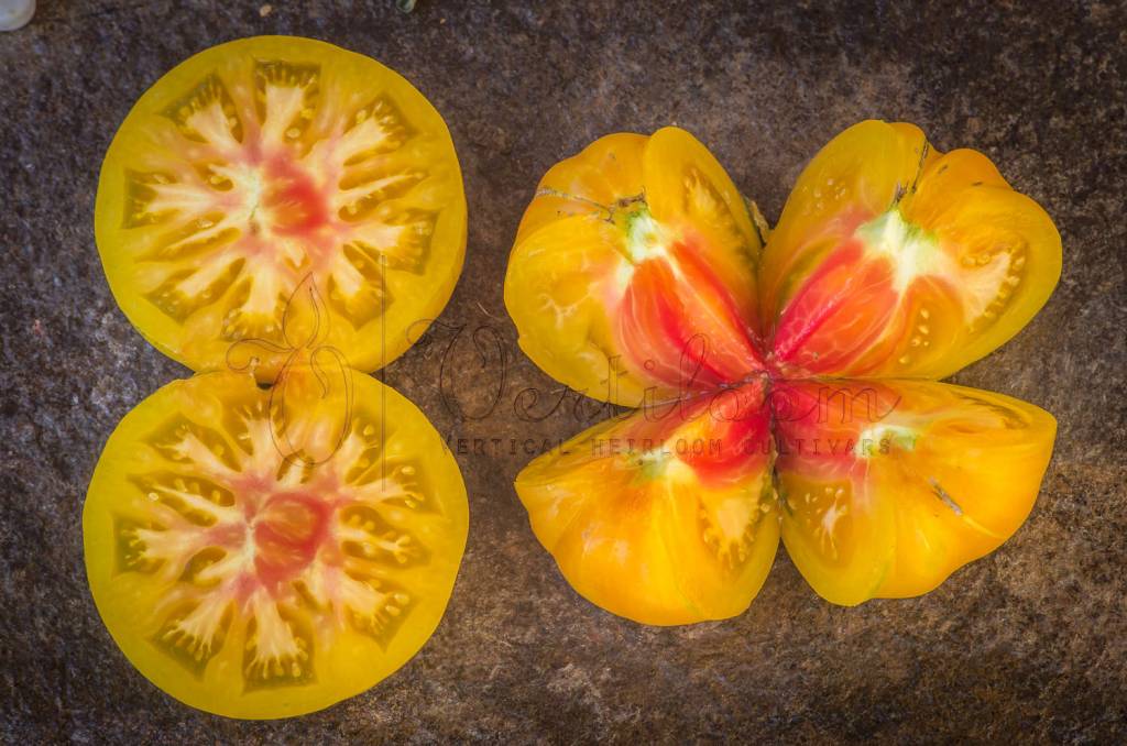 Orange-yellow beefsteak flesh marbled with red. Scented and aromatic flavor: delicious.